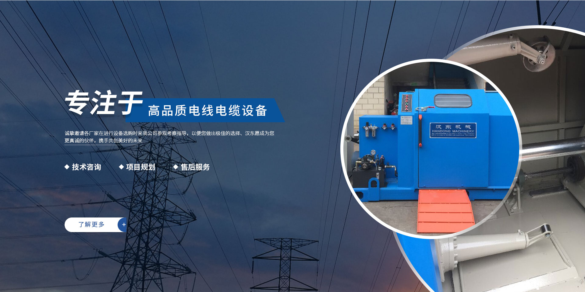 常州漢東機械始創(chuàng)于2006年,是集電線電纜機械設計、開發(fā)、制造、安裝、調(diào)試為一體化的高科技企業(yè)。本公司自開業(yè)以來,積極引進日本,歐美等國外電線電纜設備之先進技術(shù),先后成功推出了達到行業(yè)先進水平的電線電纜設備,主要產(chǎn)品有擠出、繞包、束線、成纜等電線電纜固定設備。在提供系統(tǒng)設備的同時,還向客戶提供售前技術(shù)咨詢、項目規(guī)劃、以及售后服務。我公司本著“以人為本、科技先導、用戶為上”的宗旨,為客戶提供牢靠的產(chǎn)品與省心的服務。漢東愿成為您更真誠的伙伴,攜手共創(chuàng)美好的未來! 了解更多+大核心優(yōu)勢